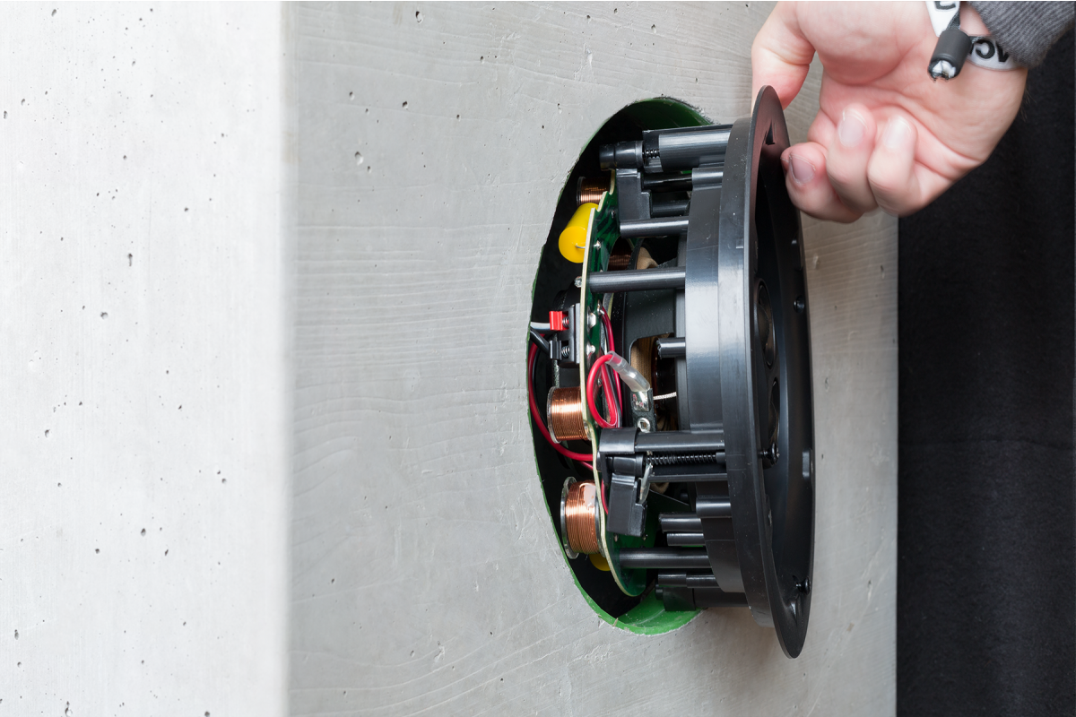 Die Einbaubox eignet sich mit einer Einbautiefe von 110 mm perfekt für die Installation des Loxone Speakers in Betondecken.